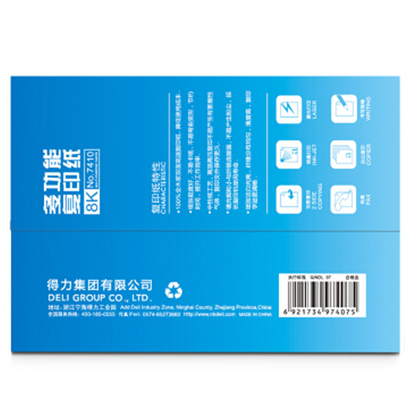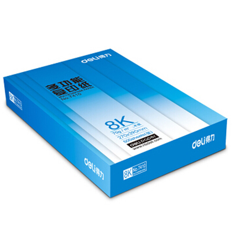 • 商品名称:得力(deli) 7410 8K 莱茵河复印纸 70g 500张/包 单包装