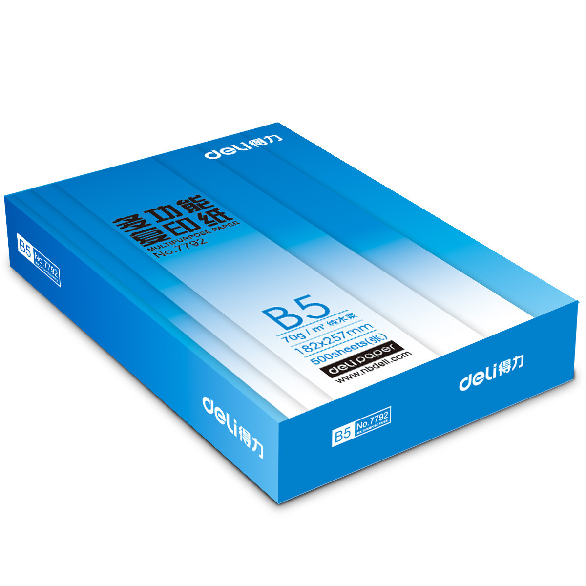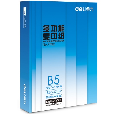 • 商品名称:得力(deli) 7792 B5 莱茵河复印纸 70g 500张/包 单包装