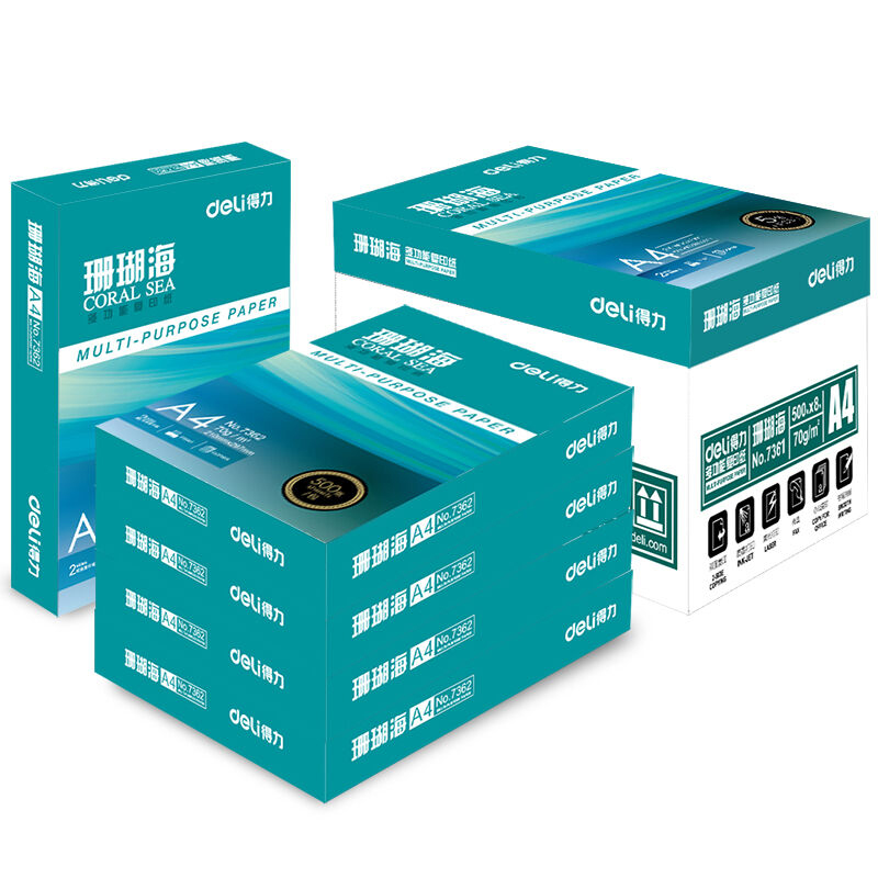 • 商品名称:得力(deli) 7360 A4 珊瑚海复印纸 70g 500张/包 8包/箱