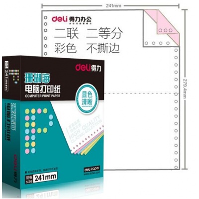 • 商品名称:得力(deli)珊瑚海彩色电脑打印纸S241-2-1/2C二层二等分80列(不撕边 色序:白红 1000页/箱)
