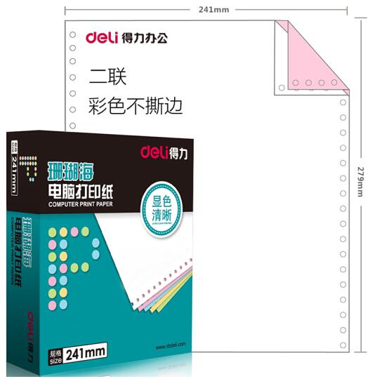 • 商品名称:得力(deli)珊瑚海S241-2C二联整张80列不撕边 彩色电脑打印纸(色序:白红 1000页/箱)